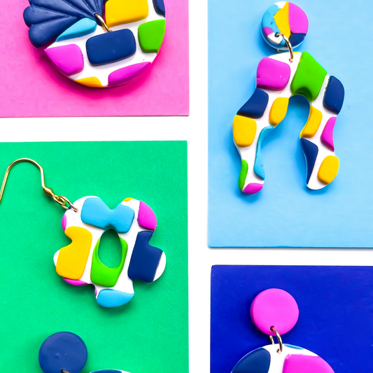 Bright Pink, Blue, Yellow & White Clay Arch Drop Earrings for Sensitive Ears
