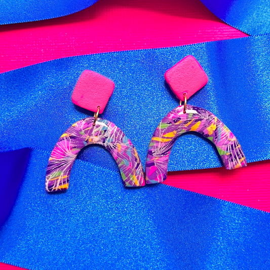Painted Purple Rainbow Clay Drop Earrings for Sensitive Ears