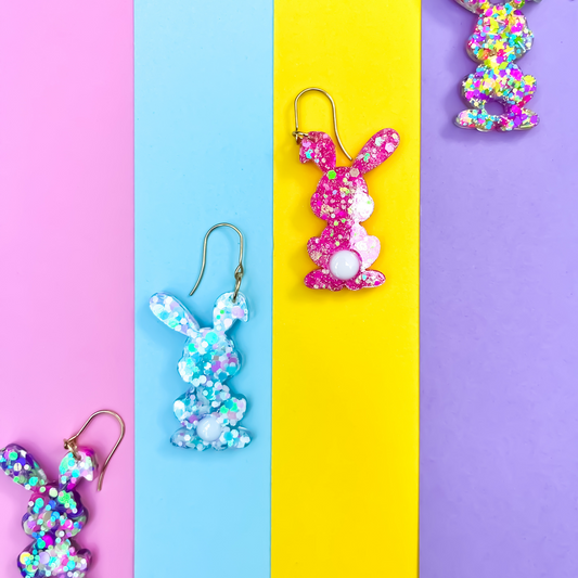 No Bunny But You Large Bright Blue Glitter Bunny Dangle Earrings with Niobium Hook