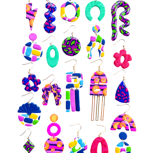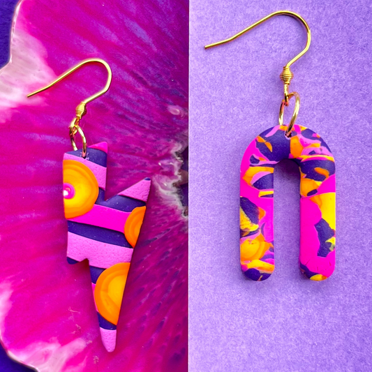 Bright Pink, Orange & Purple Clay Lightening Dangle Earrings for Sensitive Ears
