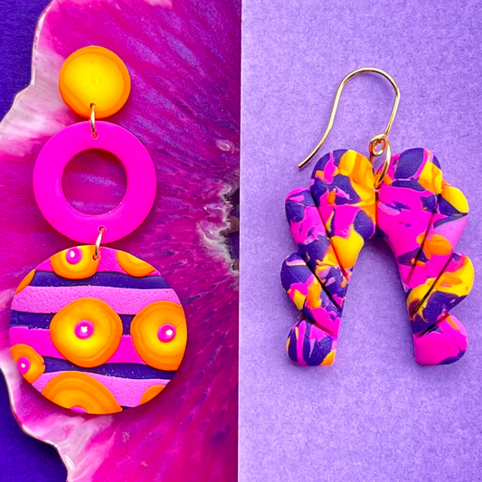 Bright Pink, Orange & Purple Clay Dangle Earrings for Sensitive Ears