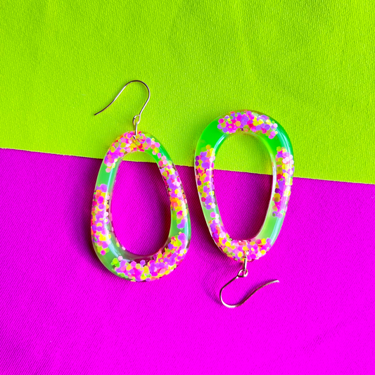 Green, Pink & Purple Glitter Dangle Earrings for Sensitive Ears