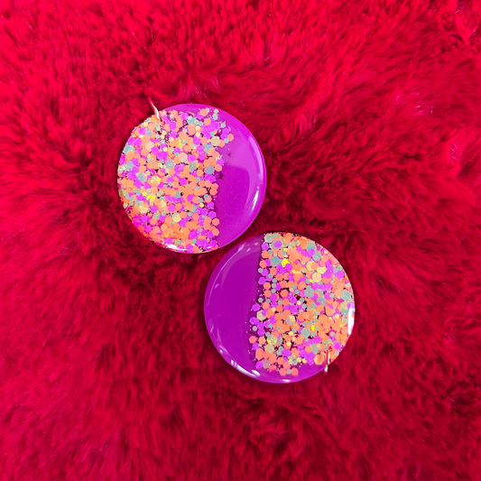 Purple, Orange & Gold Glitter Circle Dangle Earrings for Sensitive Ears