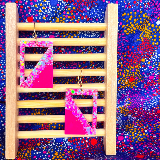 Pink & Blue Glitter Triangle Drop Earrings for Sensitive Ears