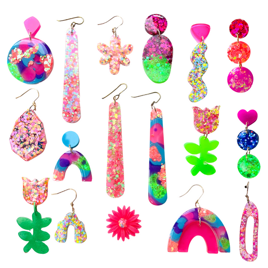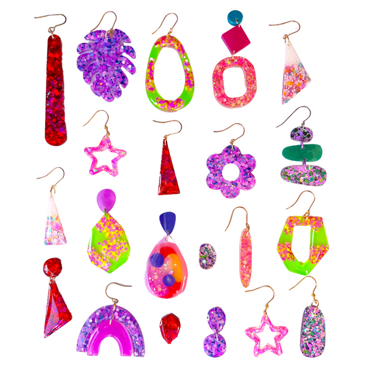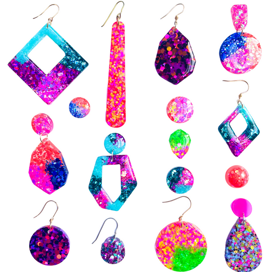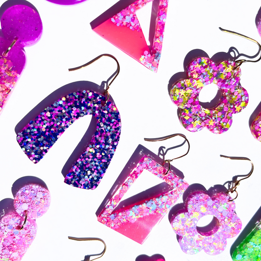 Pink, Purple & Yellow Glitter Stud Earrings for Sensitive Ears